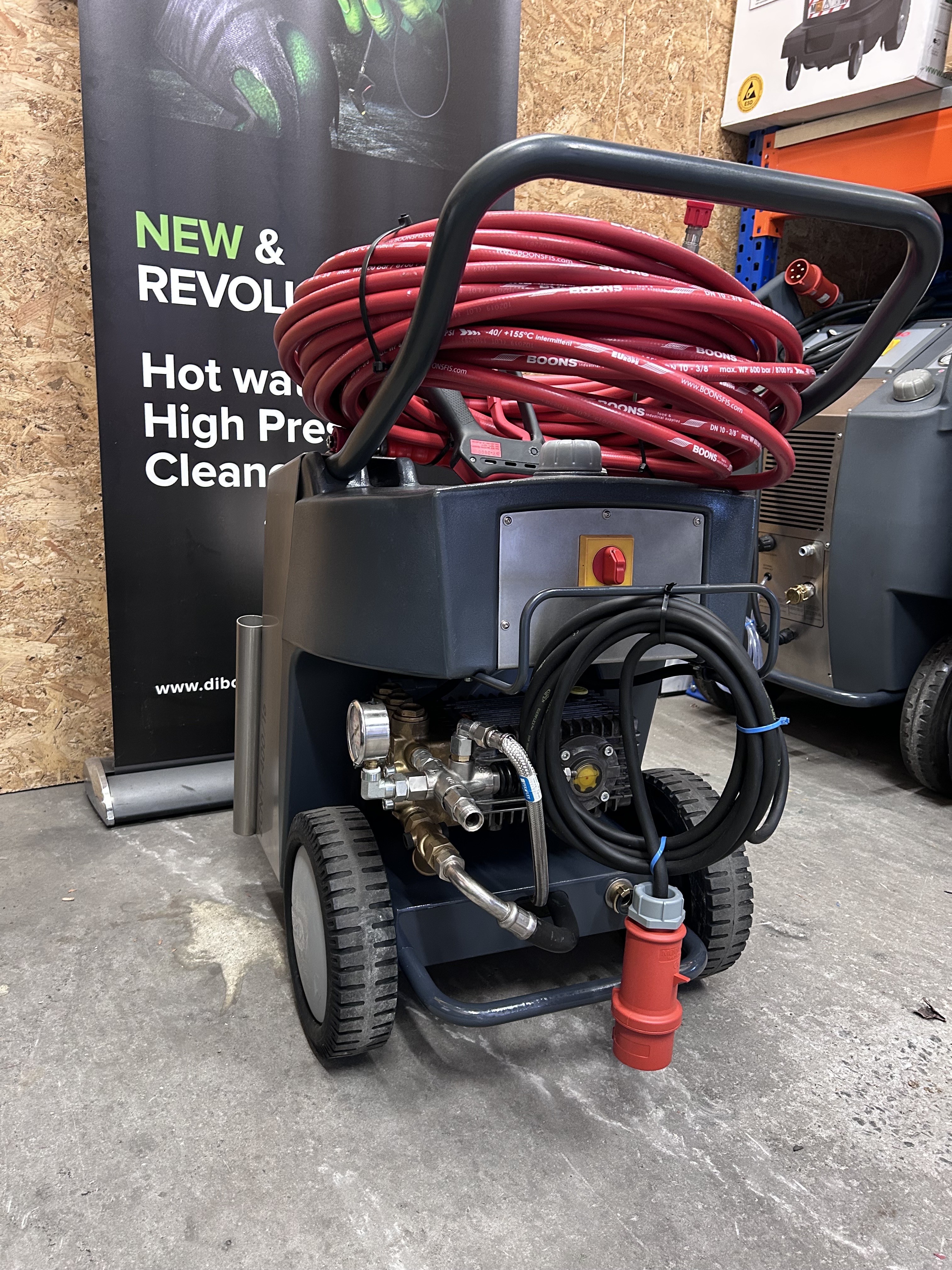 Deze DiBO ECN-T 400/16 is een robuuste driefasige koudwaterhogedrukreiniger, perfect voor zwaardere industriële toepassingen. Met een werkdruk tot 400 bar en een debiet van 16 l/min levert dit toestel uitzonderlijke reinigingsprestaties.